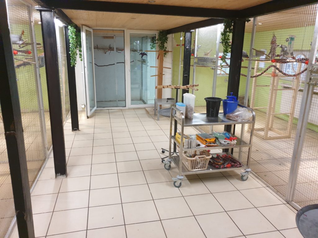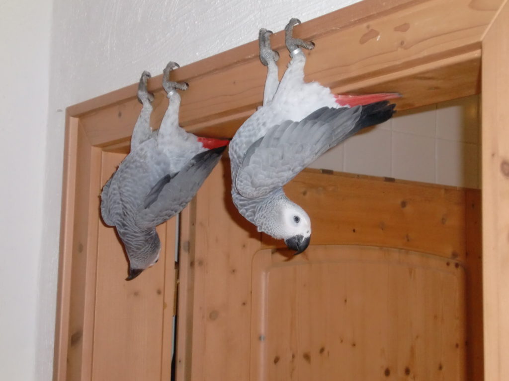 2010 kauft das Paar zwei Graupapageien von einem Züchter. Sam und Esther bekommen eine große Voliere im Wohnzimmer und werden regelmäßig in die Freiheit der vier Wände entlassen. Sie fressen die hölzernen Türrahmen ab und machen etwas zu viel Dreck. Die Lösung soll die ehemalige Küche des Gutshauses sein. Doch dort werfen die Tiere mit den Fruchtstücken aus ihren Näpfen um sich. Bald klebt der Boden. Über Bekannte stoßen Diego und Ella hinzu. Gemeinsam beziehen die vier Vögel ein frisch saniertes Gehege. Im Außenbereich entstehen die ersten Volieren.